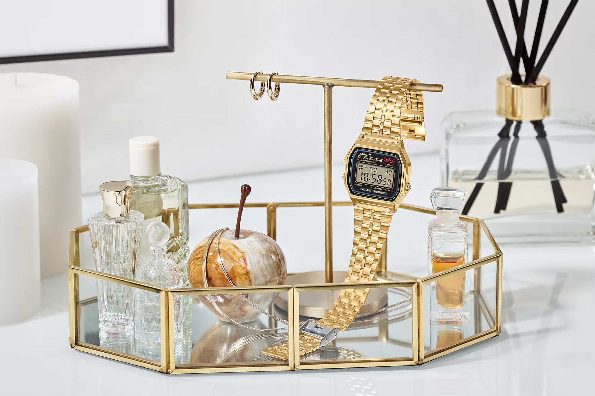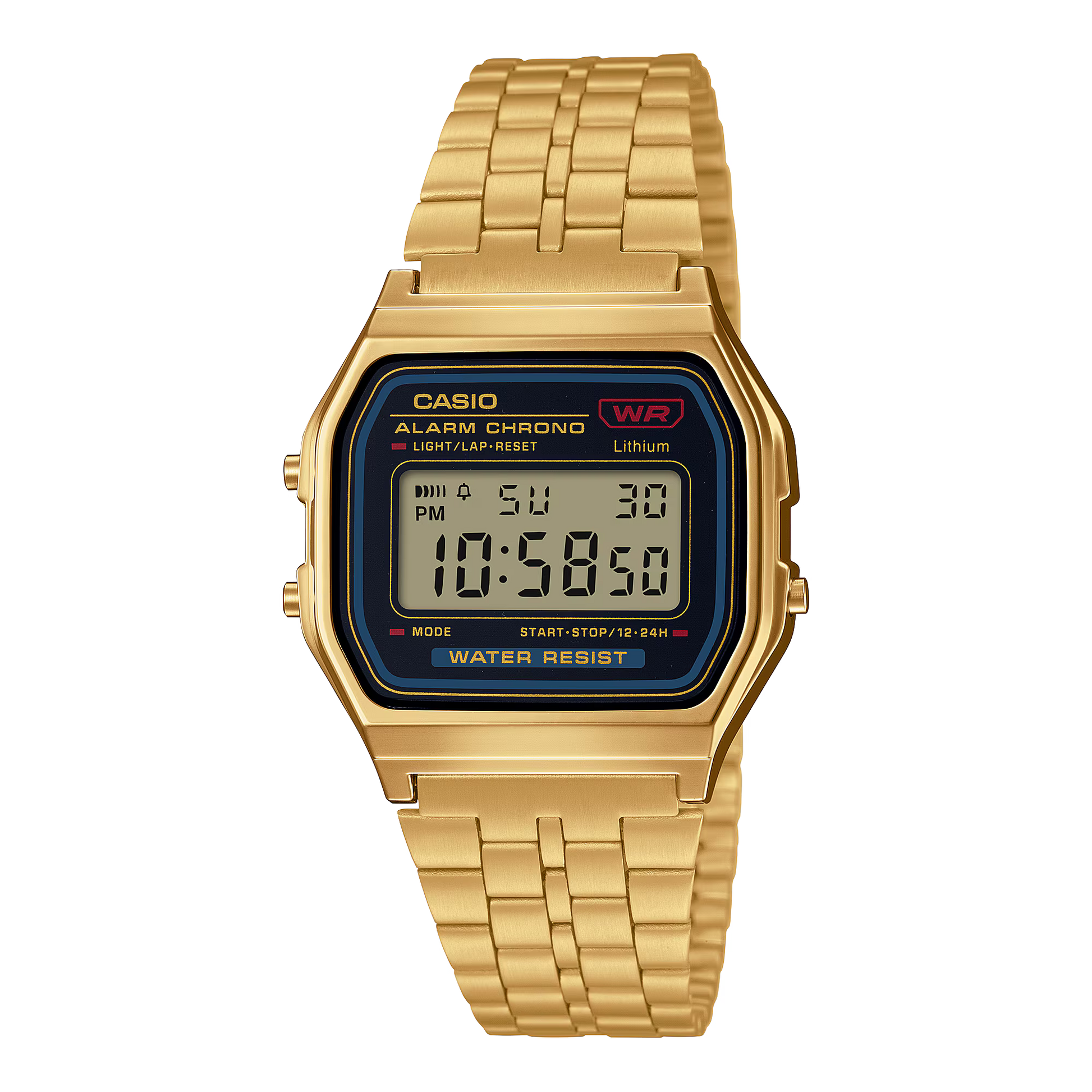 ساعة إيقاف بمعدل 1/100 من الثانية • إضاءة LED • سوار من الفولاذ المقاوم للصدأ • مقاومة الماء • وجه مربع