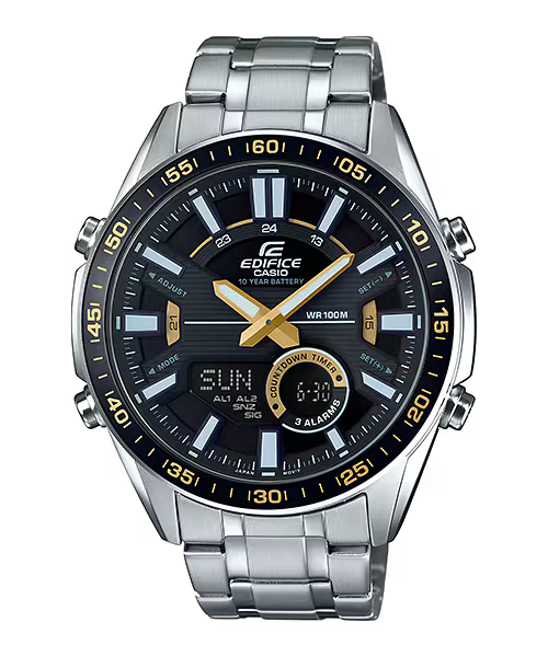 هذه الساعة هي طراز يدمج العرض التناظري/الرقمي. ويقدم هذا الطراز مجموعة كاملة من الوظائف على شاشة LCD الخاصة به، بما في ذلك وظائف التوقيت العالمي وساعة الإيقاف والمؤقت. ويتميز بقرص ثلاثي الأبعاد ثنائي الطبقات ما يضفي تصميمًا ديناميكيًا ورياضيًا. لذا هو طراز مثالي للاستخدامات اليومية.