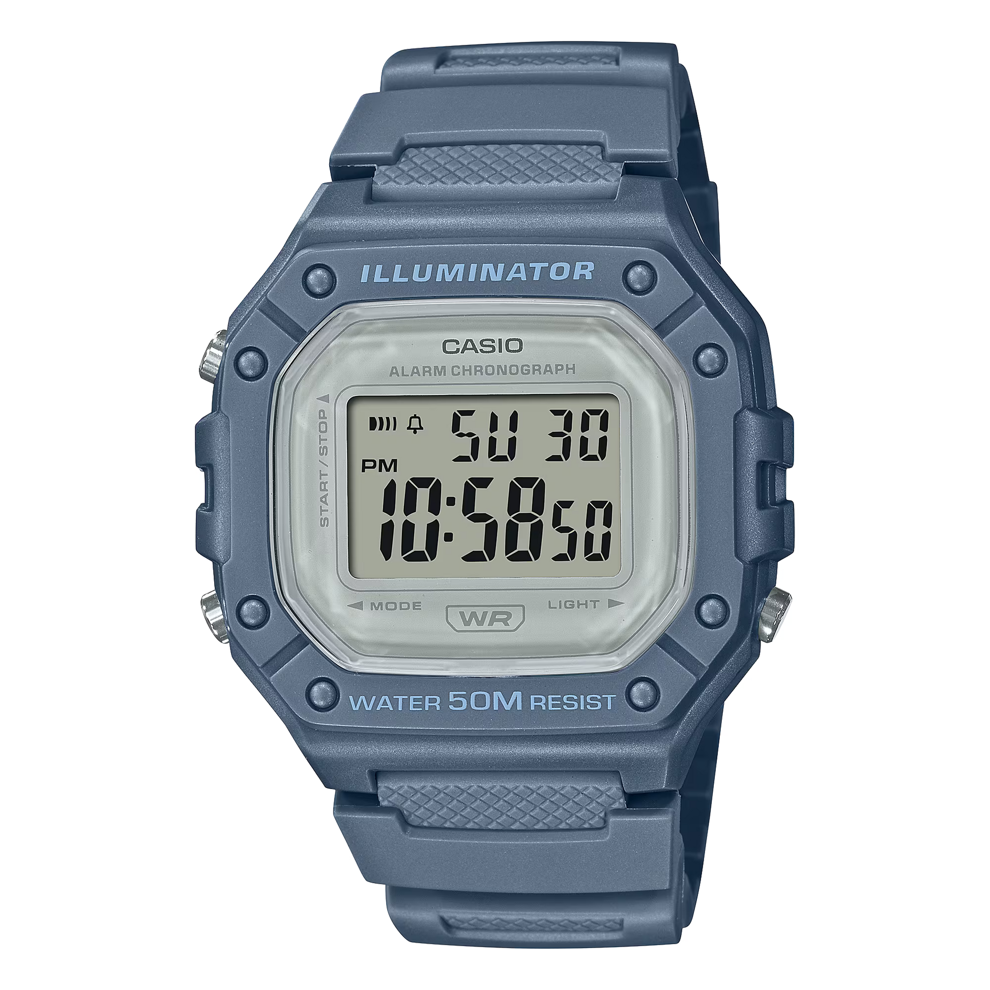 Get the iconic square face paired with resin band. This sporty design features a colorful pop to take you seamlessly from dressy to casual, whatever is on your calendar. Not just versatile, but practical, as well. With the functionality that digital delivers — LED light for easy reading in the dark, 1/100-second stopwatch, alarm, and calendar — all protected by 50-meter water resistance.
